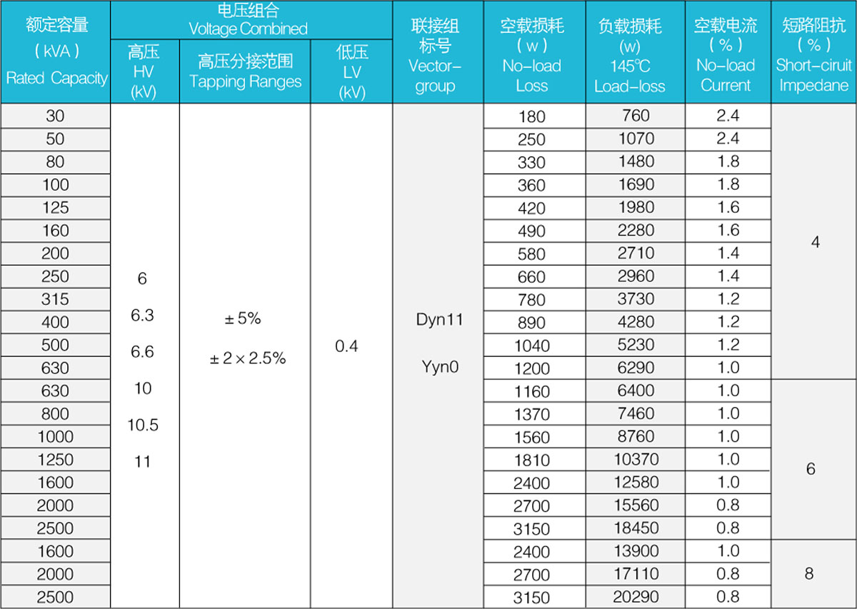 6. 損耗低,節(jié)能效果好,與SC9系列干式變樂基相比空載損耗平均下降10%,負載損耗下降5%。